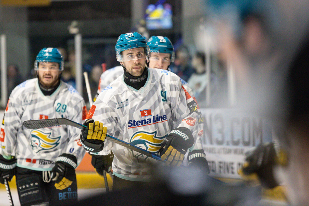 Conway added his second of the night at 52.20 to restore Belfast’s cushion at 3-5, the goal awarded after a lengthy video review for a potential kicking motion.