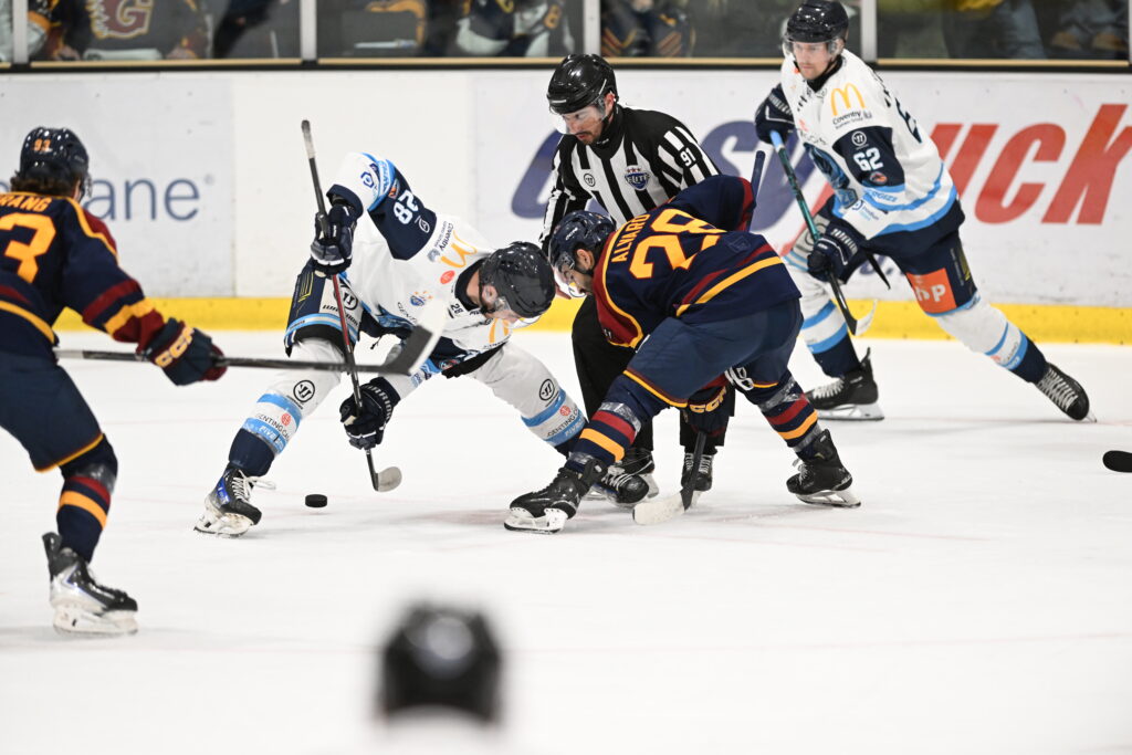 Coventry’s hopes of a comeback were further dented midway through the period when penalties to Adam Robbins and David Clements handed Guildford an extended 5-on-3 powerplay. The Blaze penalty kill stood firm, but shortly afterwards Stewart was forced to leave the game through injury. Joel Bearman replaced him to make his senior debut.