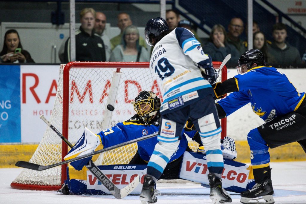 The visitors broke the deadlock at 23.39 when former Belfast Giant Matt McLeod pounced on a rebound from Donny van Belkom’s shot to beat Robson.