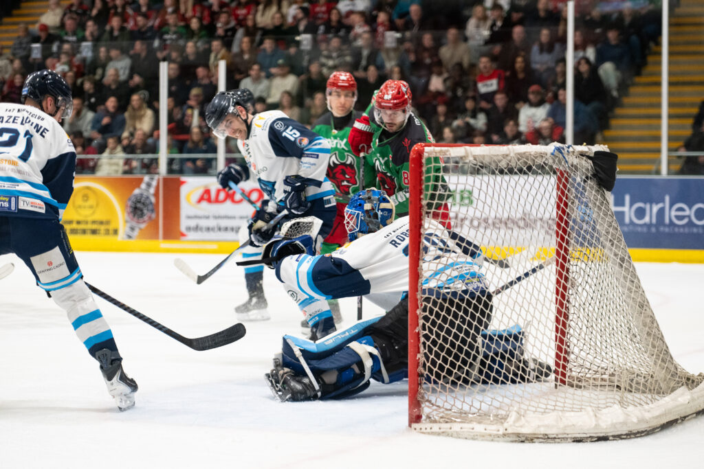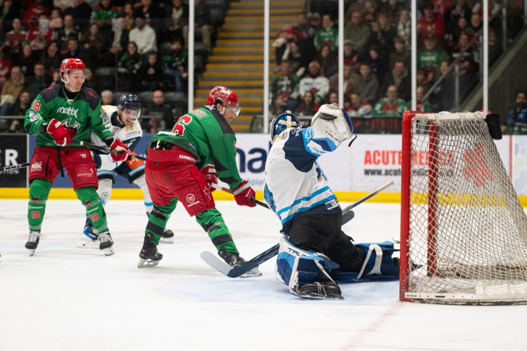 A big opportunity came Coventry’s way with two minutes remaining in the first period, but they were unable to capitalise on a two-on-one. They did, however, equalise at 18.38 when Jordan Power jumped up from defence and beat Bowns with a quick wrist shot, assisted by Mike Pelech and Matthew Gleason.
