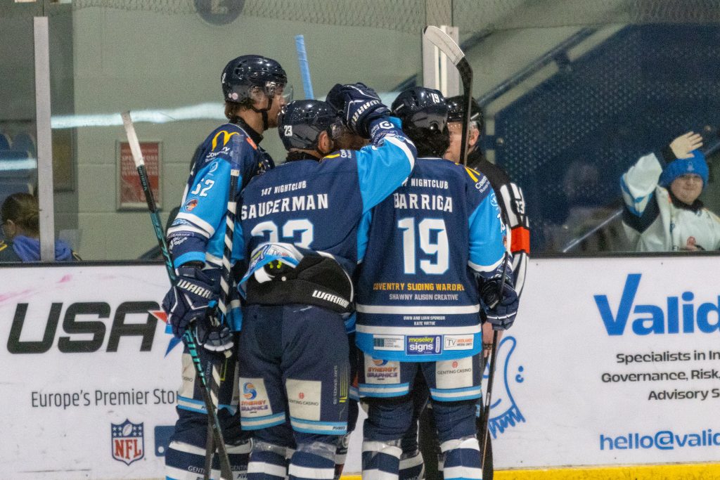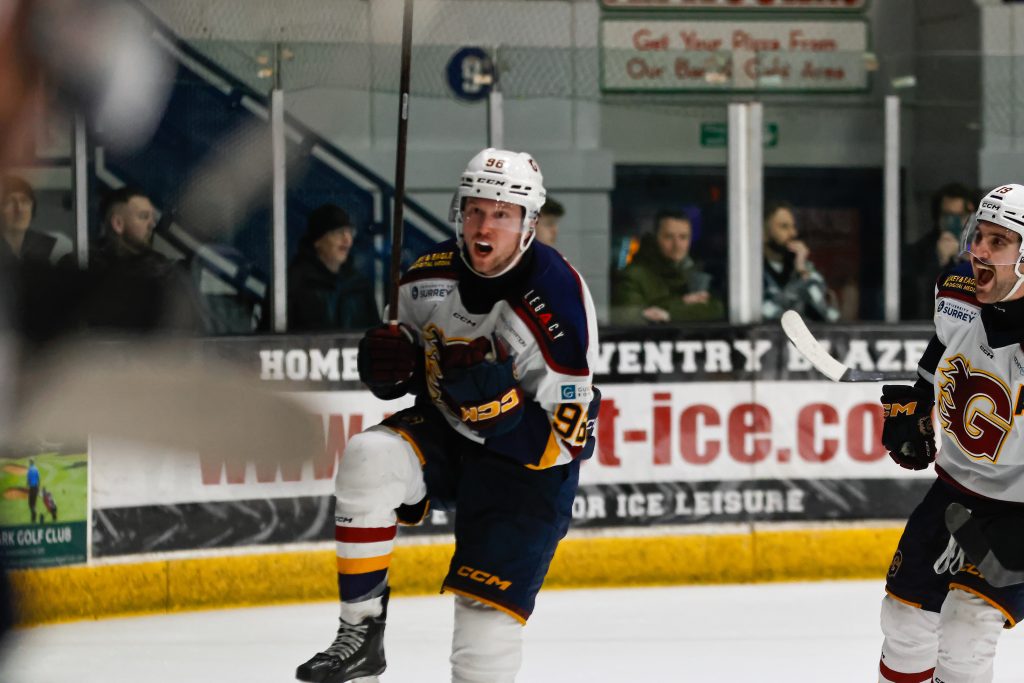 At 22.28, the Blaze restored their two-goal cushion on the powerplay. A face-off win set up in-form blue-liner Vertanen, whose backhand finish made it 3-1 which was his fourth goal in five games. Guildford pressed with a pair of powerplays late in the period, but Coventry’s penalty killers held firm.